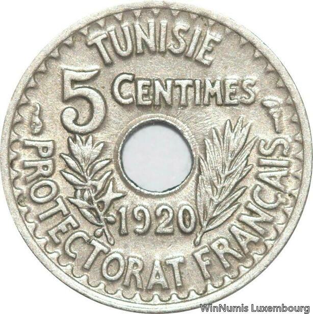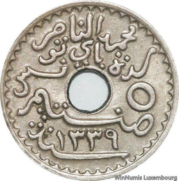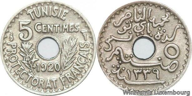 R8454 Tunisia 5 Centimes Muhammad al-Nasir Bey AH 1339 1920 Paris