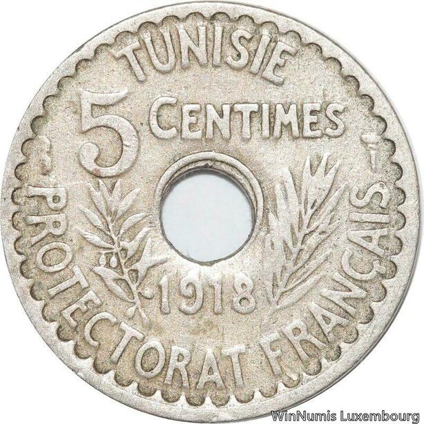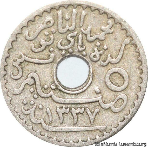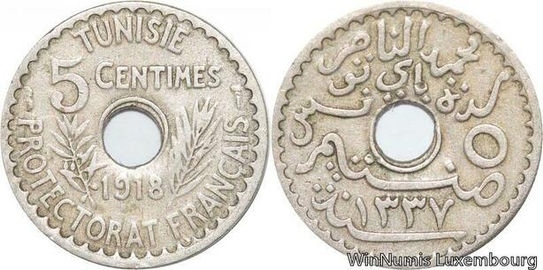 R8457 Tunisia 5 Centimes Muhammad al-Nasir Bey AH 1337 1918 Paris