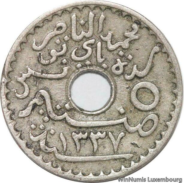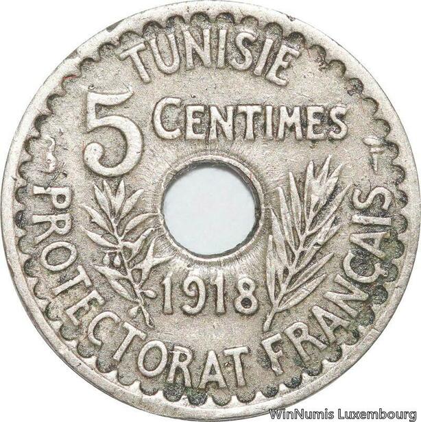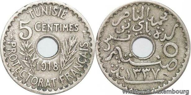 R8458 Tunisia 5 Centimes Muhammad al-Nasir Bey AH 1337 1918 Paris