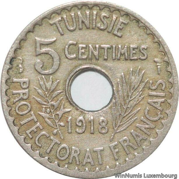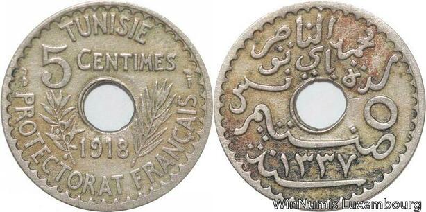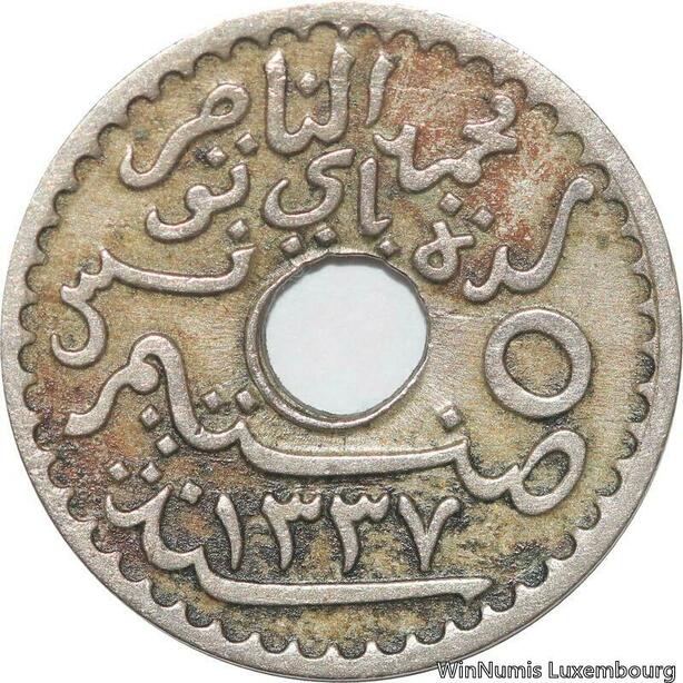 R8461 Tunisia 5 Centimes Muhammad al-Nasir Bey AH 1337 1918 Paris