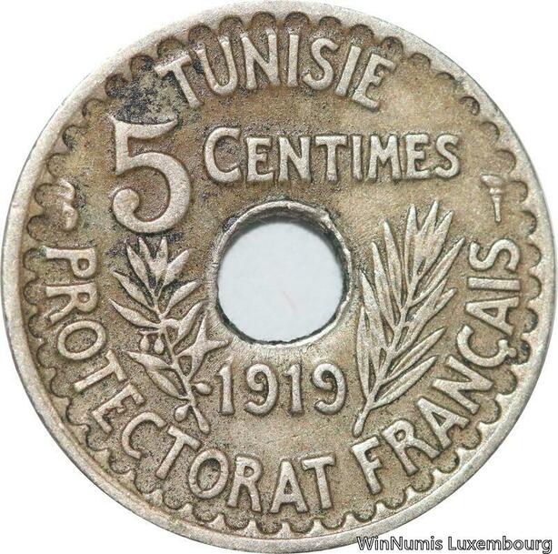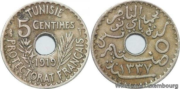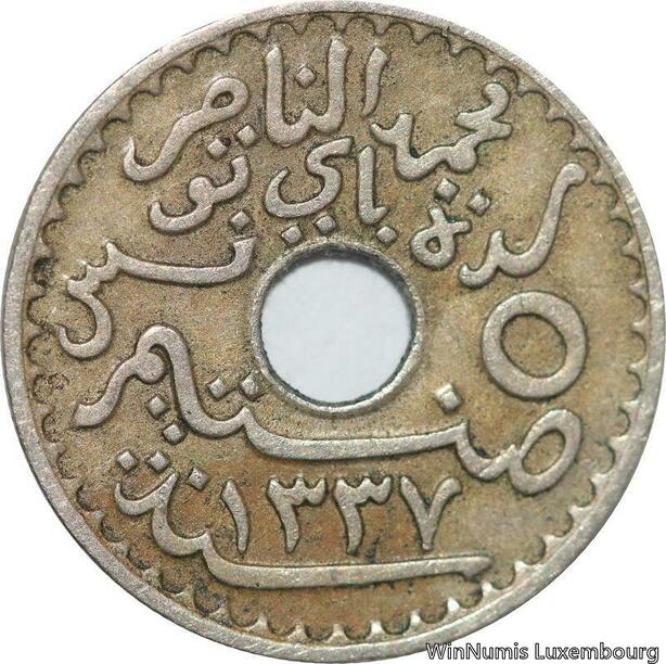 R8463 Tunisia 5 Centimes Muhammad al-Nasir Bey AH 1337 1919 Paris