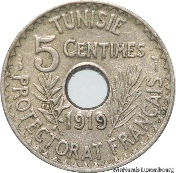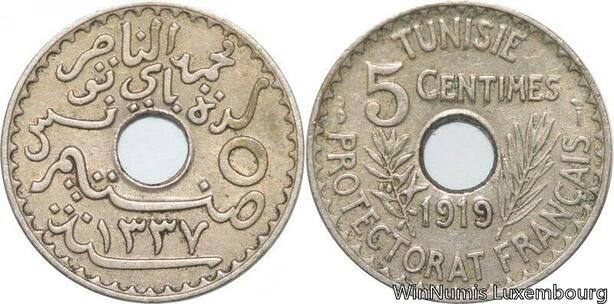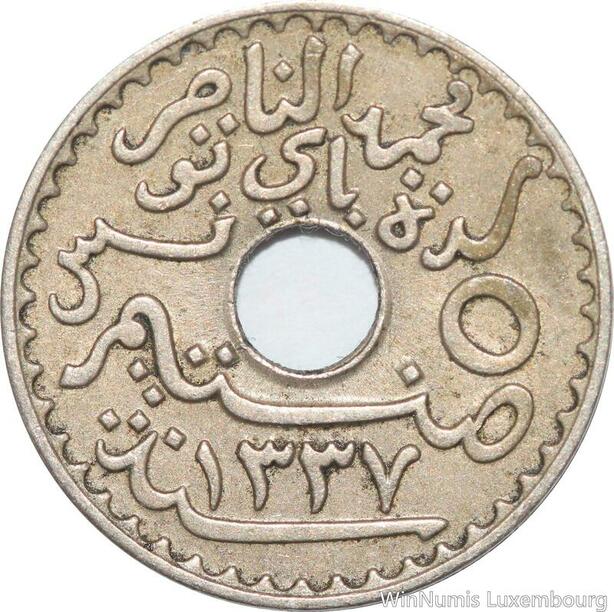 R8471 Tunisia 5 Centimes Muhammad al-Nasir Bey AH 1337 1919 Paris