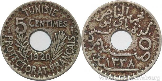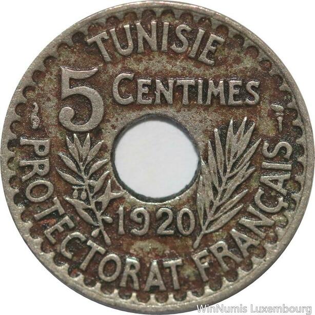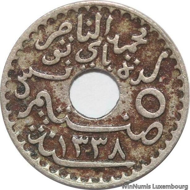 R8474 Tunisia 5 Centimes Muhammad al-Nasir Bey AH 1338 1920 Paris