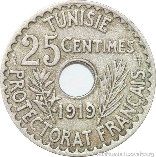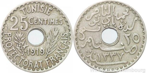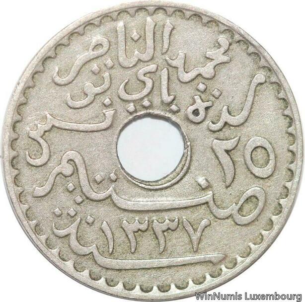R8479 Tunisia 25 Centimes Muhammad al-Nasir Bey AH 1337 1919 Paris