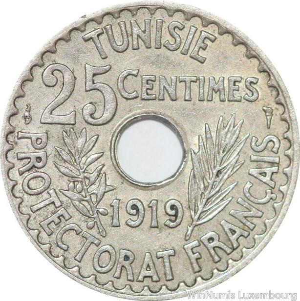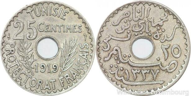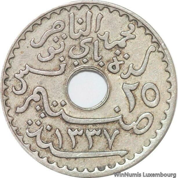 R8483 Tunisia 25 Centimes Muhammad al-Nasir Bey AH 1337 1919 Paris