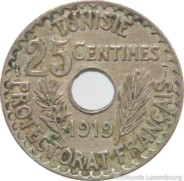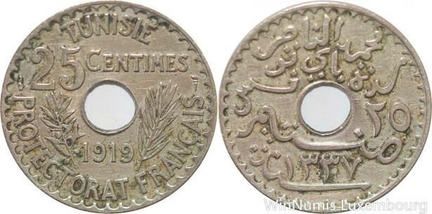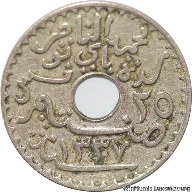 R8485 Tunisia 25 Centimes Muhammad al-Nasir Bey AH 1337 1919 Paris