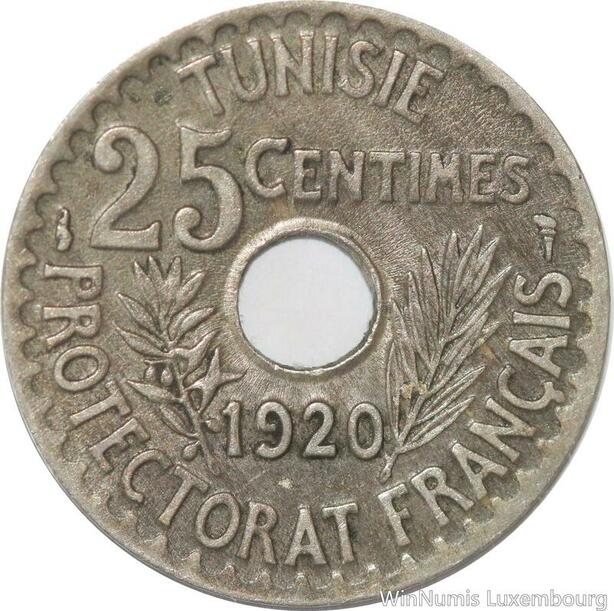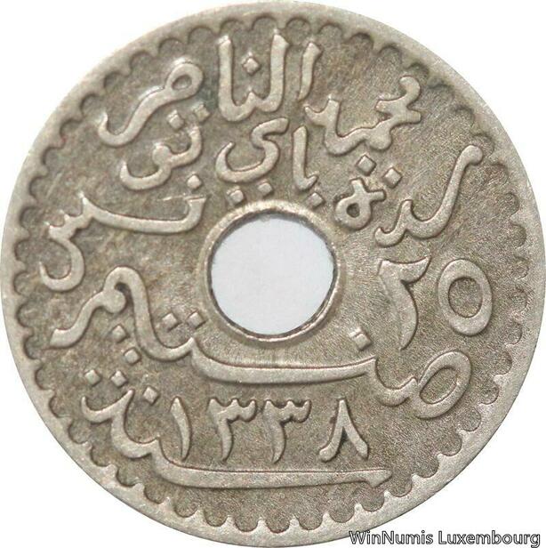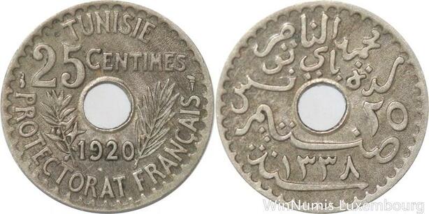 R8494 Tunisia 25 Centimes Muhammad al-Nasir Bey AH 1338 1920 Paris