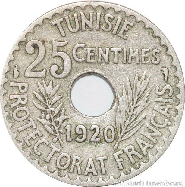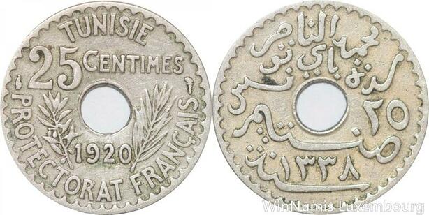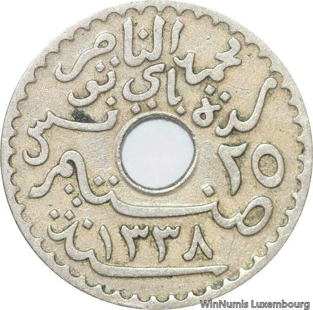 R8496 Tunisia 25 Centimes Muhammad al-Nasir Bey AH 1338 1920 Paris