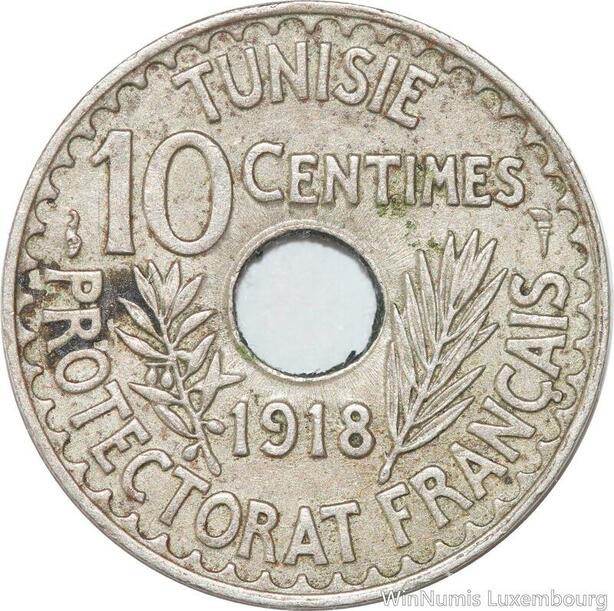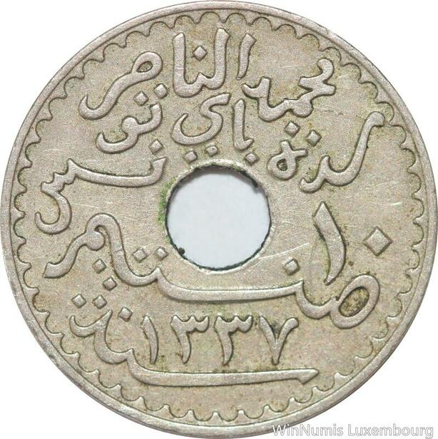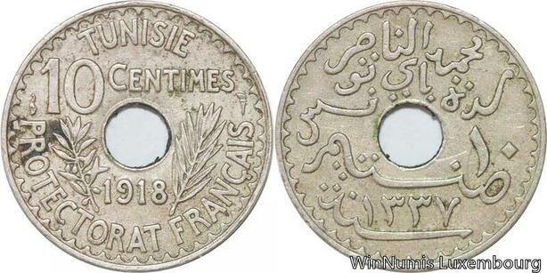 R8512 Tunisia 10 Centimes Muhammad al-Nasir Bey AH 1337 1918 Paris