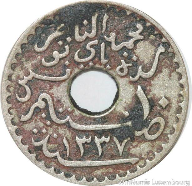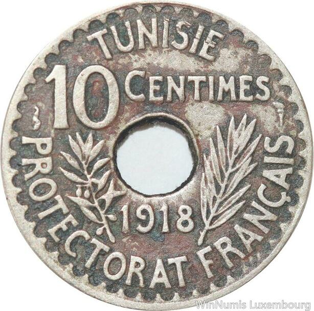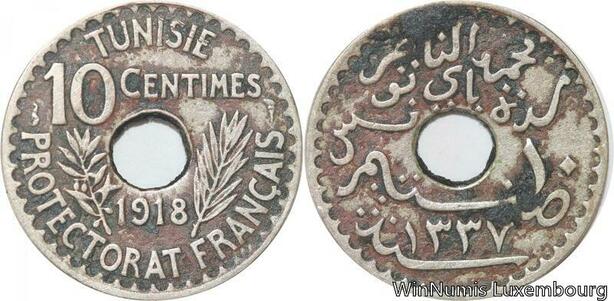 R8513 Tunisia 10 Centimes Muhammad al-Nasir Bey AH 1337 1918 Paris