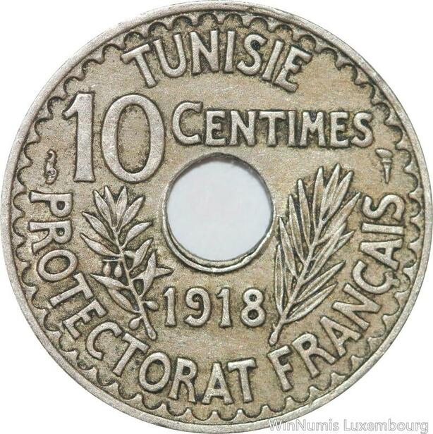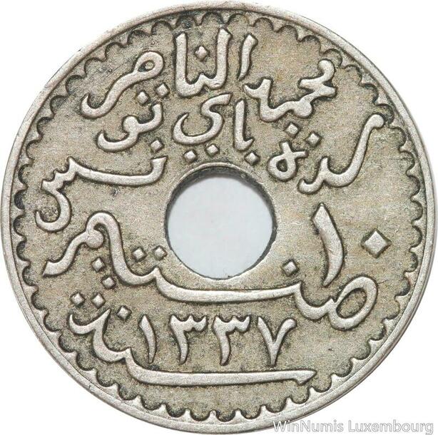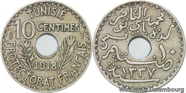 R8514 Tunisia 10 Centimes Muhammad al-Nasir Bey AH 1337 1918 Paris