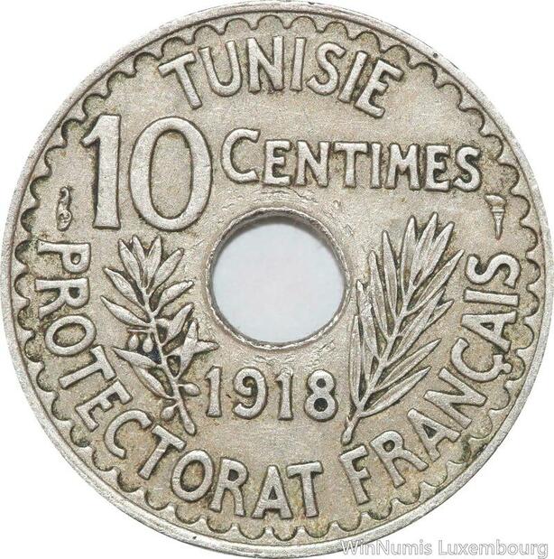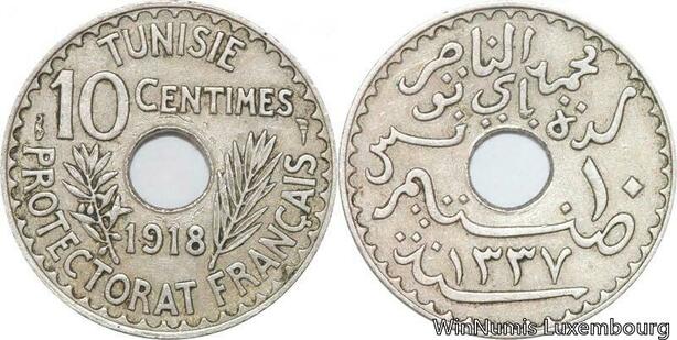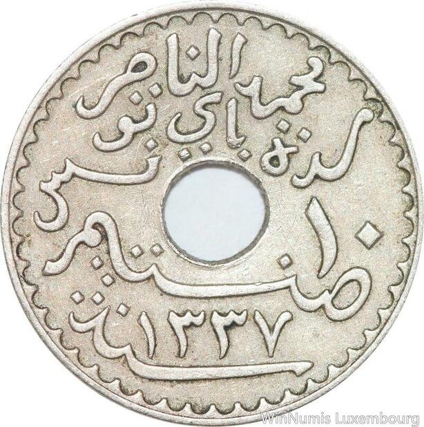 R8515 Tunisia 10 Centimes Muhammad al-Nasir Bey AH 1337 1918 Paris