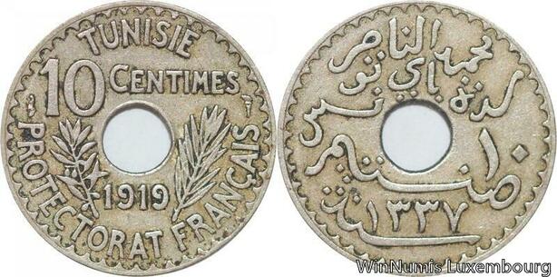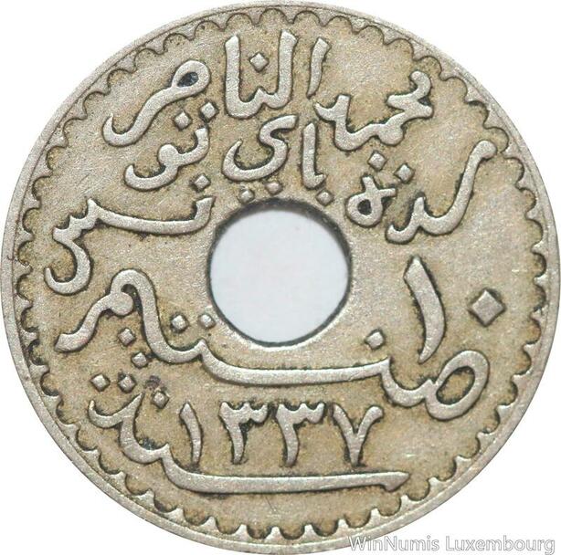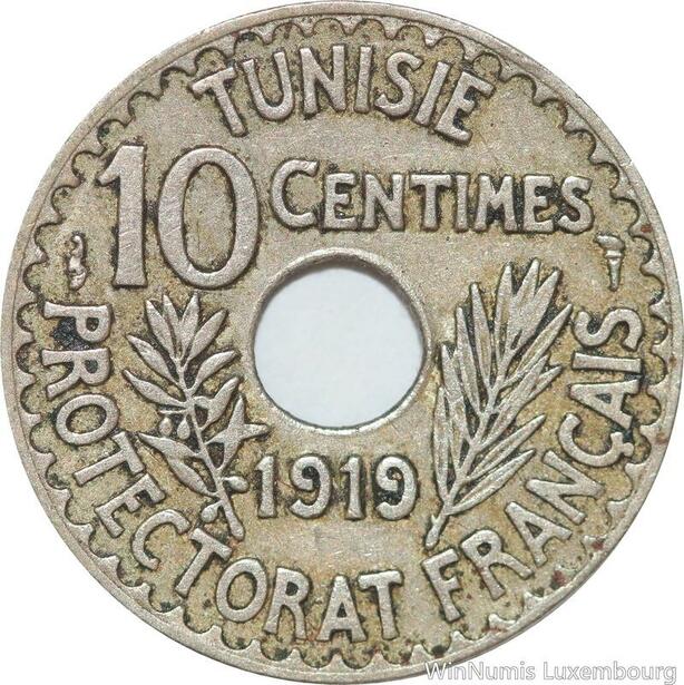 R8517 Tunisia 10 Centimes Muhammad al-Nasir Bey AH 1337 1919 Paris