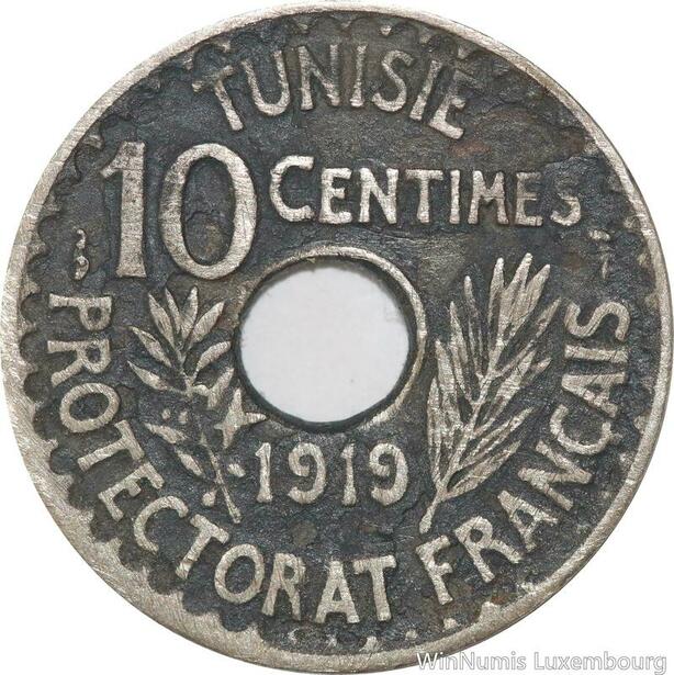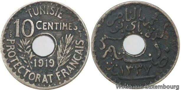 R8525 Tunisia 10 Centimes Muhammad al-Nasir Bey AH 1337 1919 Paris