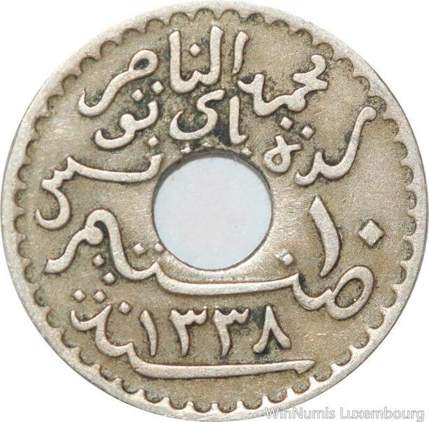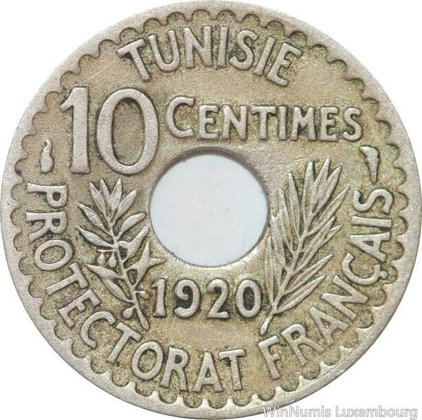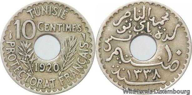 R8526 Tunisia 10 Centimes Muhammad al-Nasir Bey AH 1338 1920 Paris