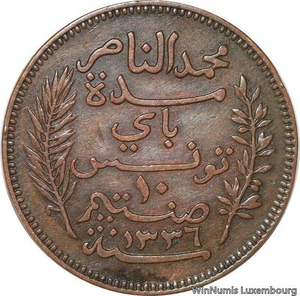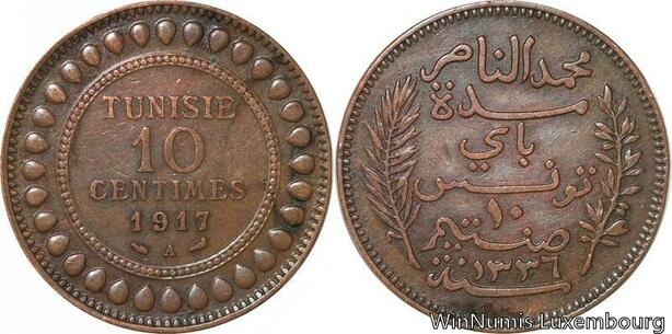 R8528 Tunisia 10 Centimes Muhammad al-Nasir Bey AH 1336 1917 A Paris -> M offer