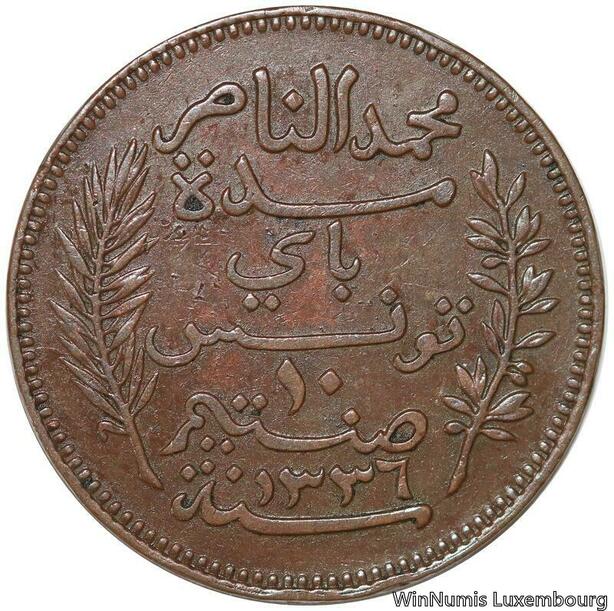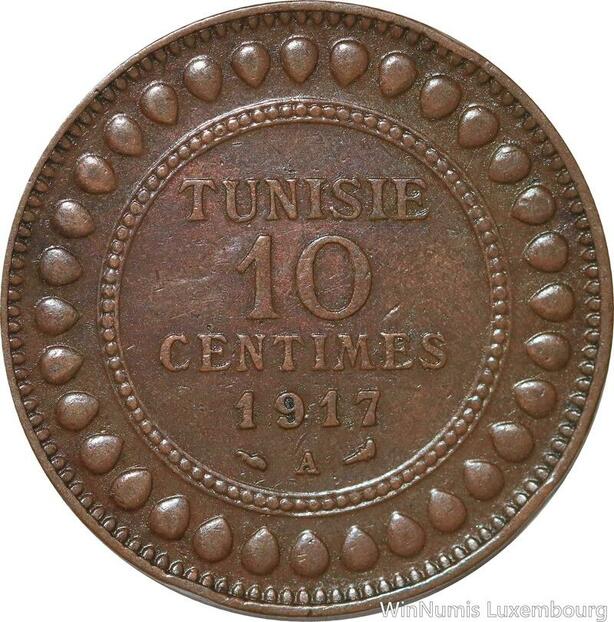 R8529 Tunisia 10 Centimes Muhammad al-Nasir Bey AH 1336 1917 A Paris -> M offer
