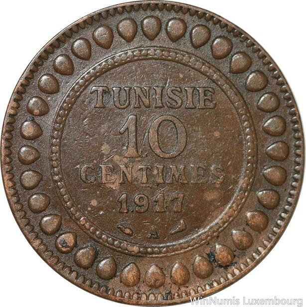 R8532 Tunisia 10 Centimes Muhammad al-Nasir Bey AH 1336 1917 A Paris -> M offer