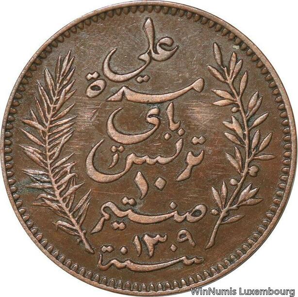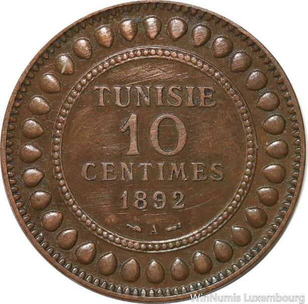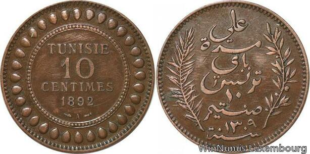 R8538 Tunisia 10 Centimes Muhammad al-Nasir Bey AH 1309 1892 A Paris -> M offer