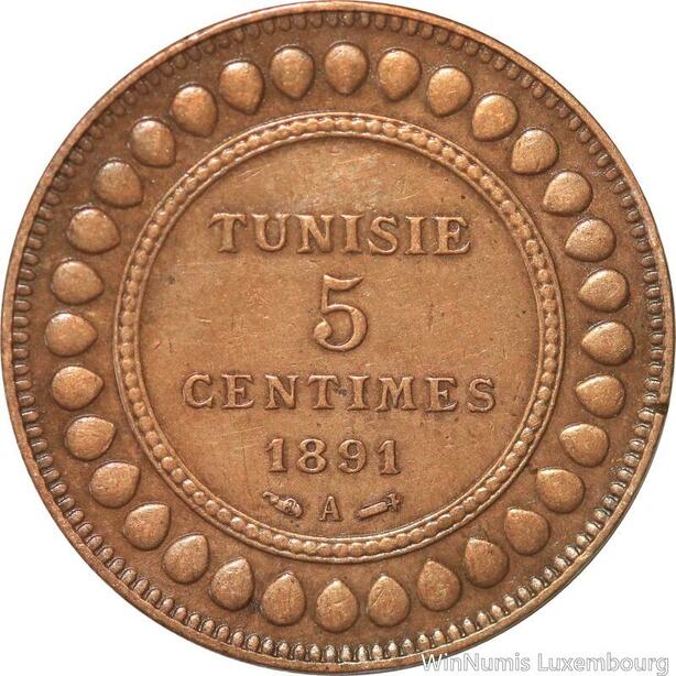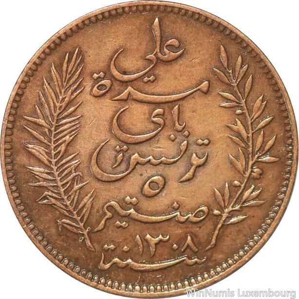 R8545 Tunisia 5 Centimes Muhammad al-Nasir Bey AH 1308 1891 A Paris > Make offer