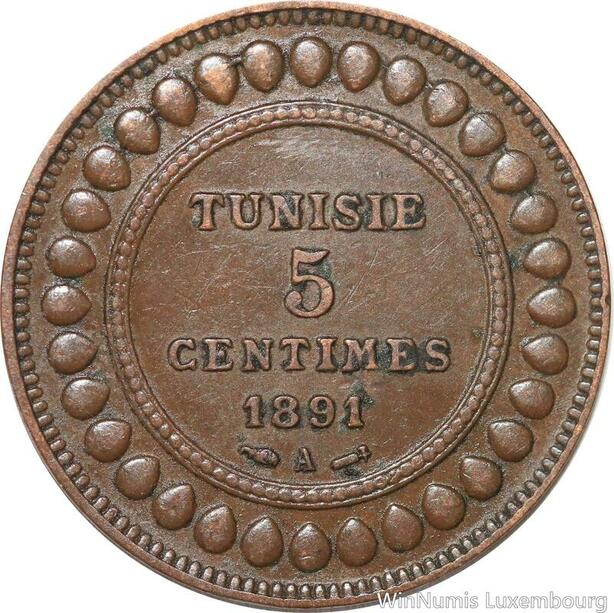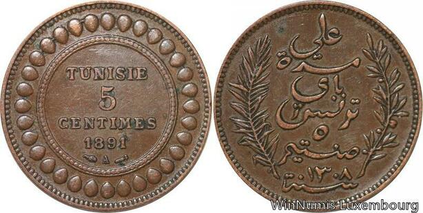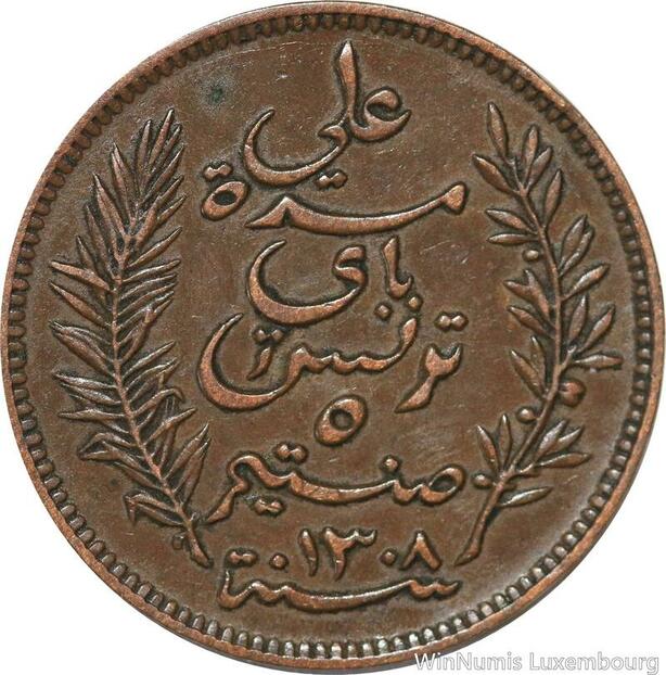 R8547 Tunisia 5 Centimes Muhammad al-Nasir Bey AH 1308 1891 A Paris > Make offer