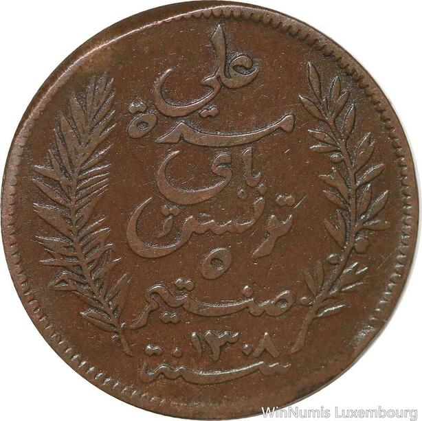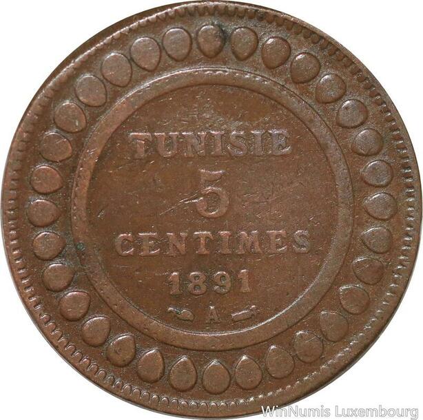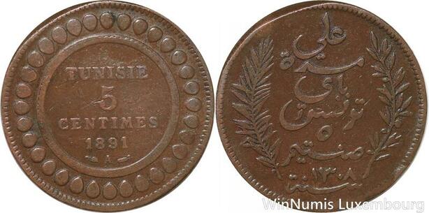 R8550 Tunisia 5 Centimes Muhammad al-Nasir Bey AH 1308 1891 A Paris > Make offer