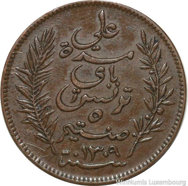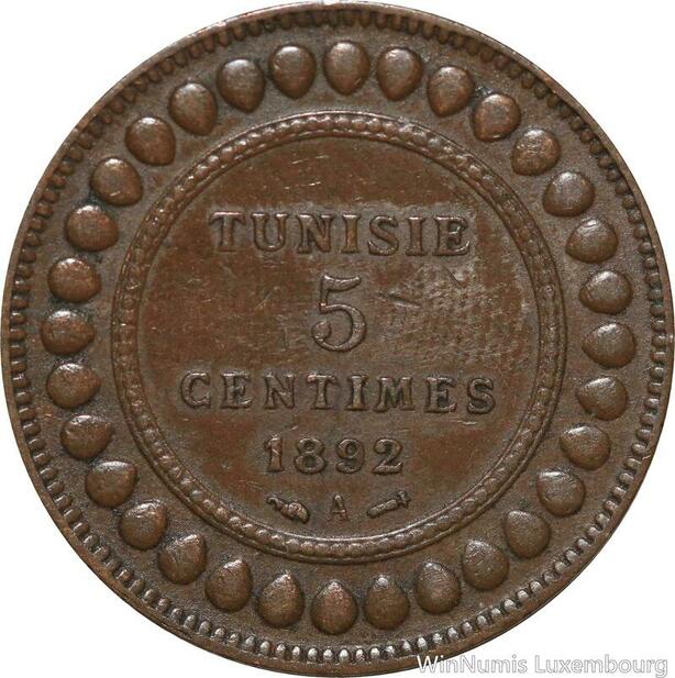 R8558 Tunisia 5 Centimes Muhammad al-Nasir Bey AH 1309 1892 A Paris > Make offer