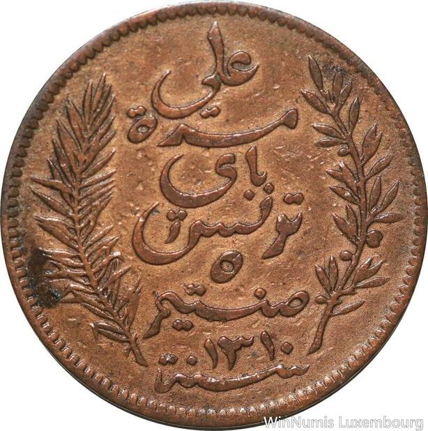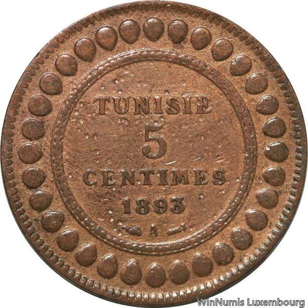 R8566 Tunisia 5 Centimes Muhammad al-Nasir Bey AH 1310 1893 A Paris > Make offer