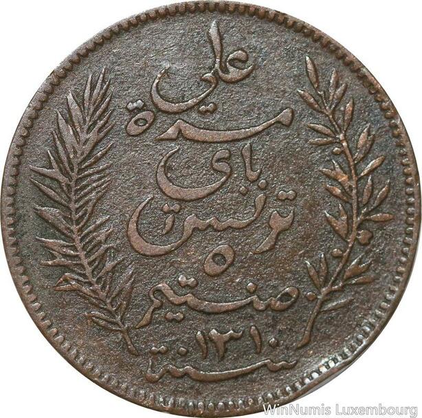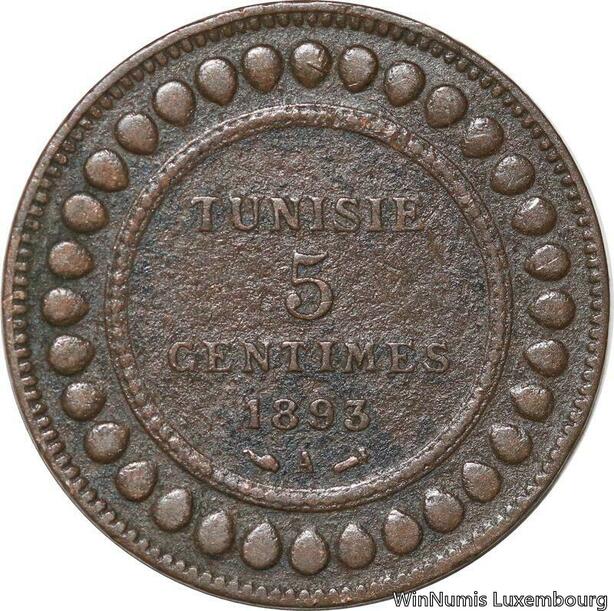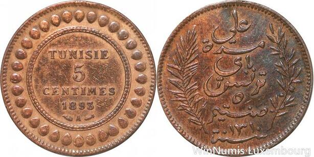 R8568 Tunisia 5 Centimes Muhammad al-Nasir Bey AH 1310 1893 A Paris > Make offer