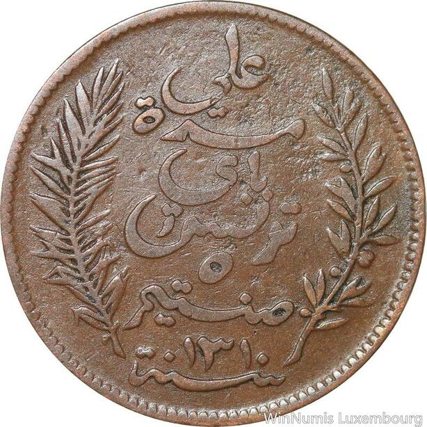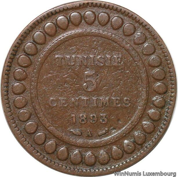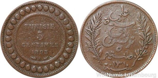 R8570 Tunisia 5 Centimes Muhammad al-Nasir Bey AH 1310 1893 A Paris > Make offer