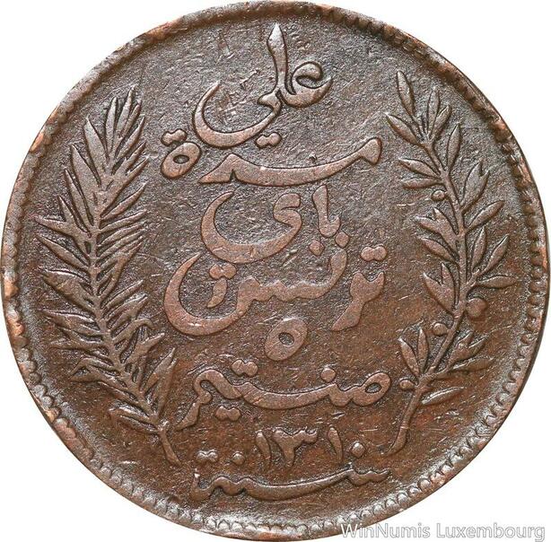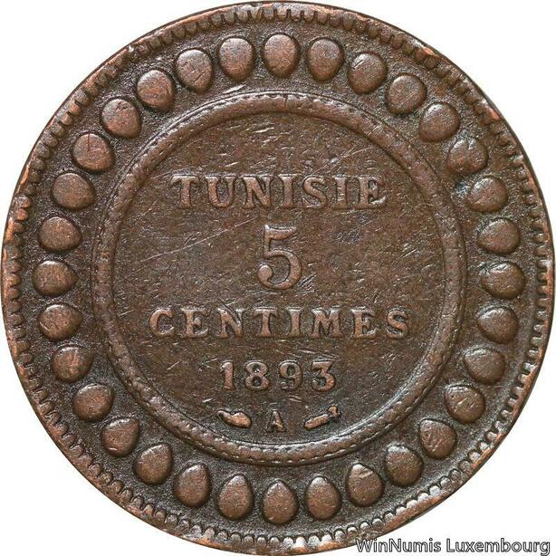 R8571 Tunisia 5 Centimes Muhammad al-Nasir Bey AH 1310 1893 A Paris > Make offer