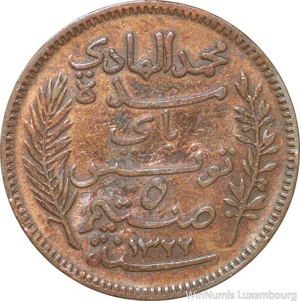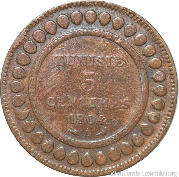R8577 Tunisia 5 Centimes Muhammad al-Nasir Bey AH 1322 1904 A Paris > Make offer