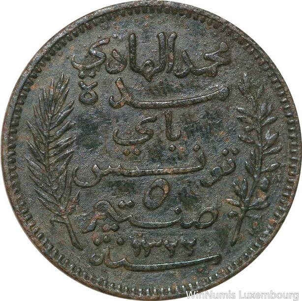 R8578 Tunisia 5 Centimes Muhammad al-Nasir Bey AH 1322 1904 A Paris > Make offer