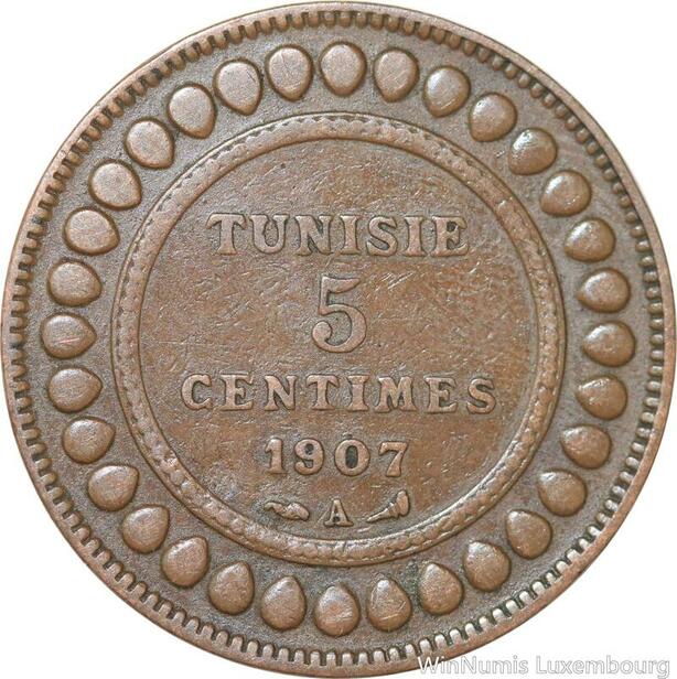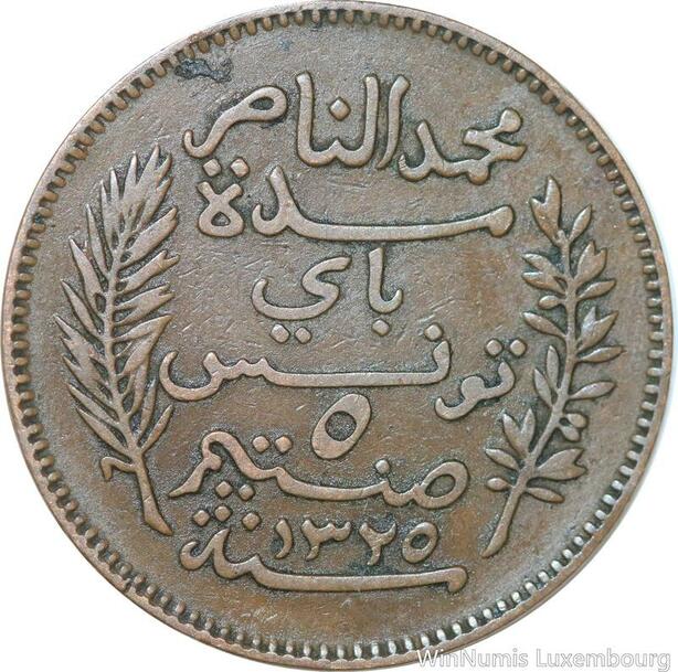 R8582 Tunisia 5 Centimes Muhammad al-Nasir Bey AH 1325 1907 A Paris > Make offer