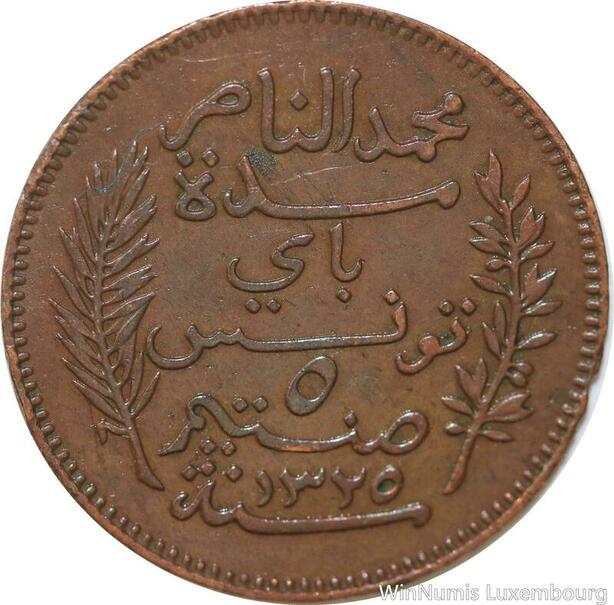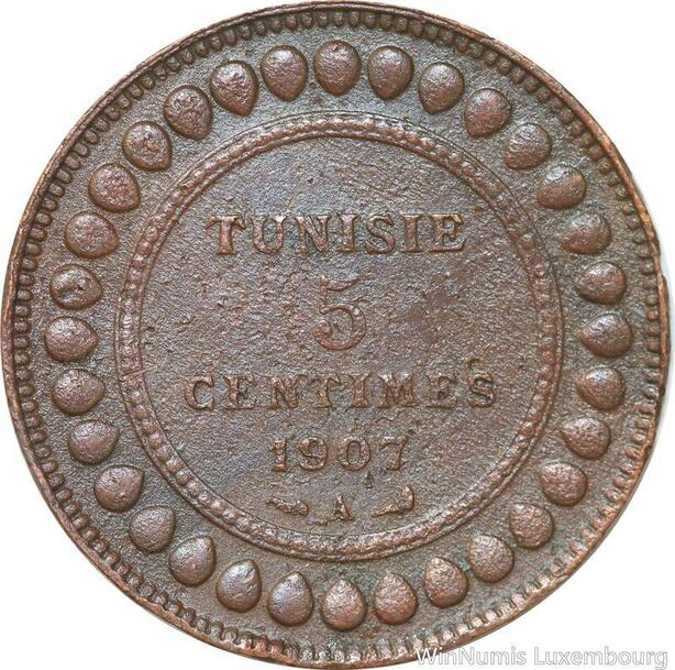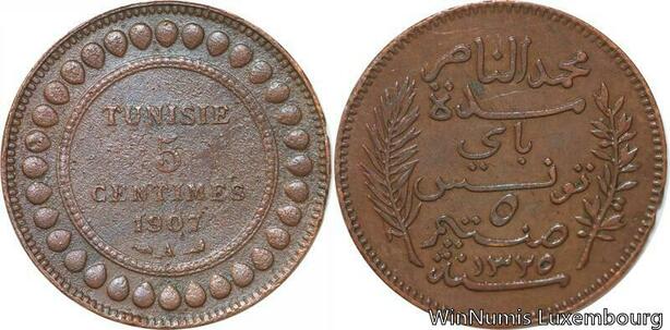 R8583 Tunisia 5 Centimes Muhammad al-Nasir Bey AH 1325 1907 A Paris > Make offer