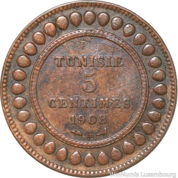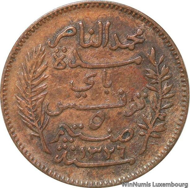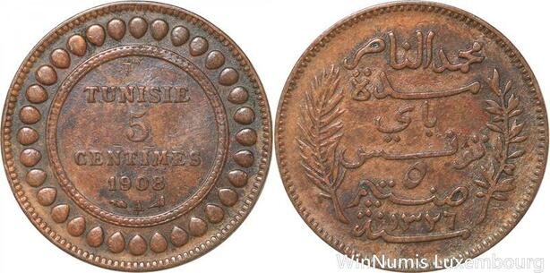 R8593 Tunisia 5 Centimes Muhammad al-Nasir Bey AH 1326 1908 A Paris > Make offer