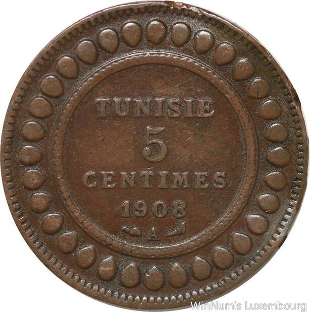 R8597 Tunisia 5 Centimes Muhammad al-Nasir Bey AH 1326 1908 A Paris > Make offer