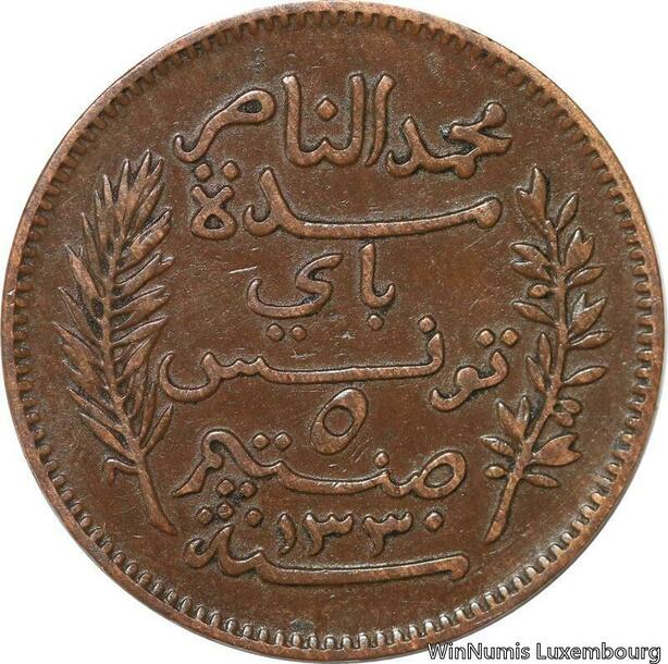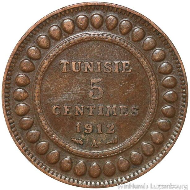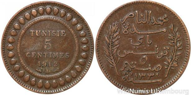 R8601 Tunisia 5 Centimes Muhammad al-Nasir Bey AH 1330 1912 A Paris > Make offer