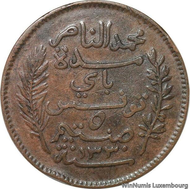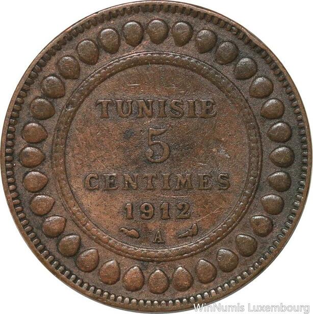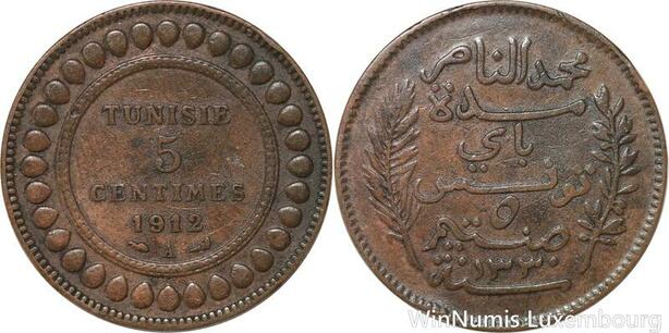 R8603 Tunisia 5 Centimes Muhammad al-Nasir Bey AH 1330 1912 A Paris > Make offer
