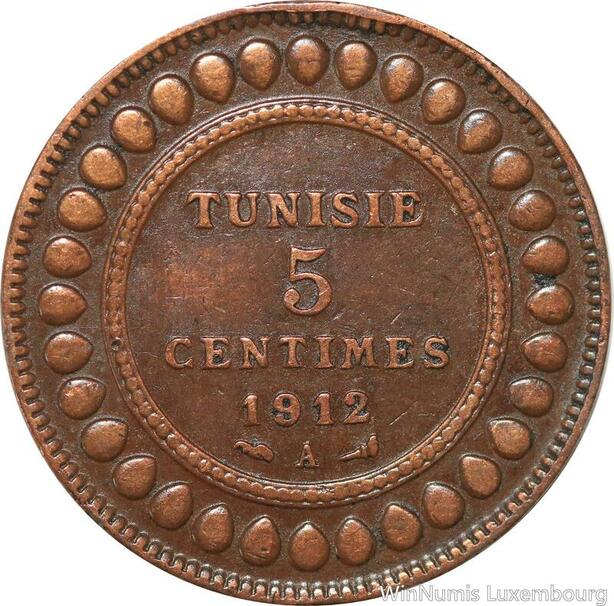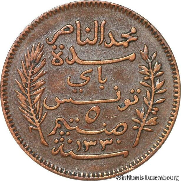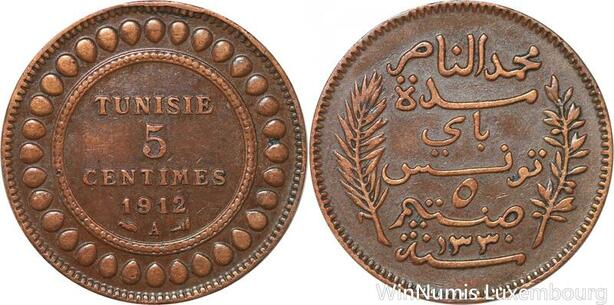 R8605 Tunisia 5 Centimes Muhammad al-Nasir Bey AH 1330 1912 A Paris > Make offer