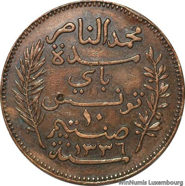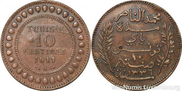 R8607 Tunisia 10 Centimes Muhammad al-Nasir Bey AH 1336 1917 A Paris -> M offer