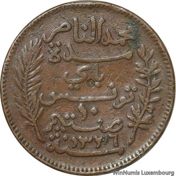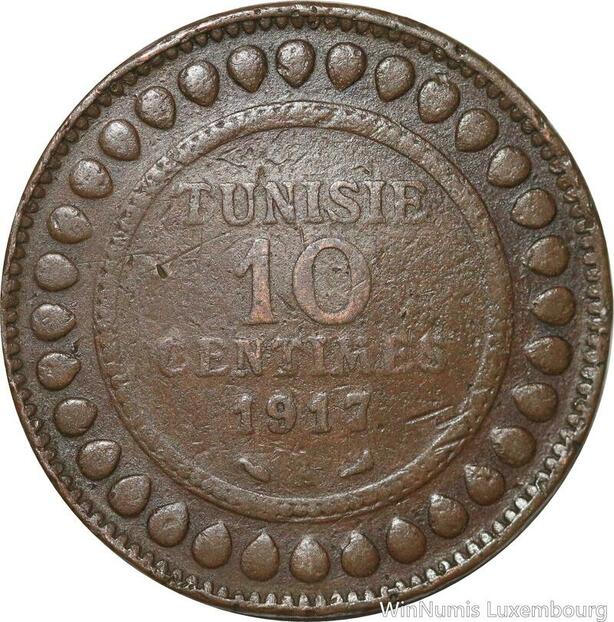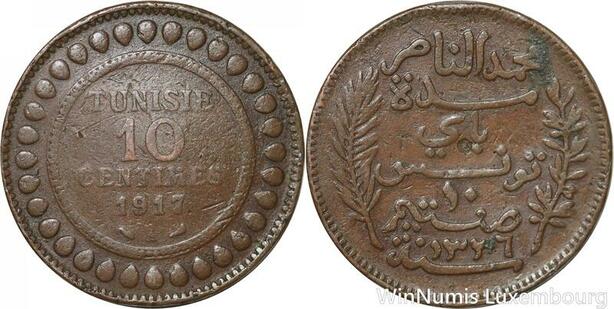 R8613 Tunisia 10 Centimes Muhammad al-Nasir Bey AH 1336 1917 A Paris -> M offer