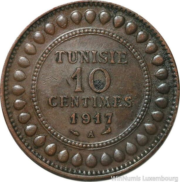 R8614 Tunisia 10 Centimes Muhammad al-Nasir Bey AH 1336 1917 A Paris -> M offer