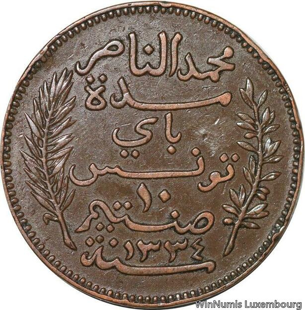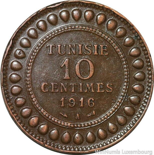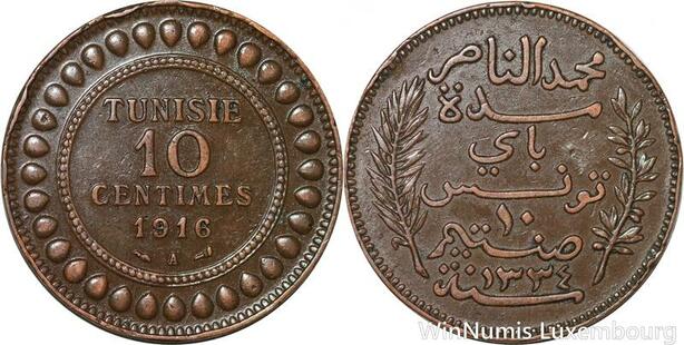 R8616 Tunisia 10 Centimes Muhammad al-Nasir Bey AH 1334 1916 A Paris -> M offer