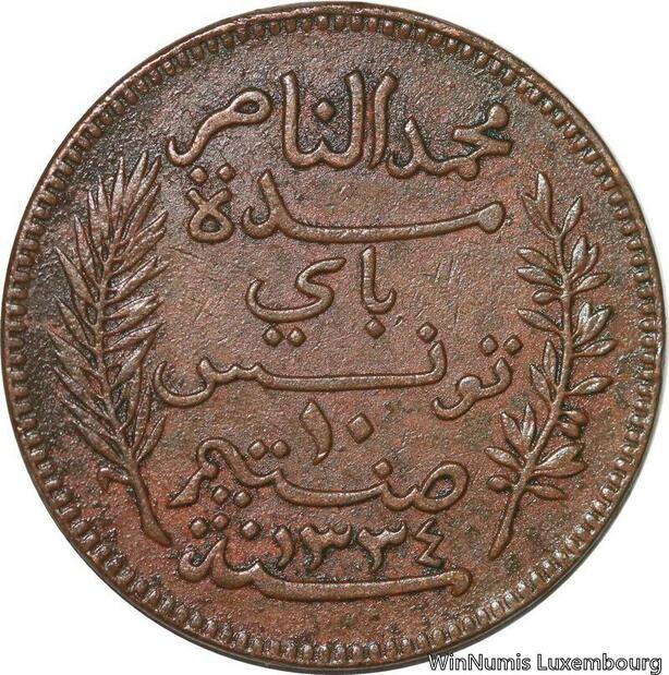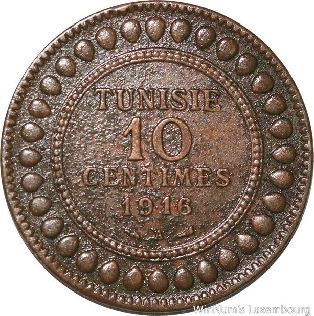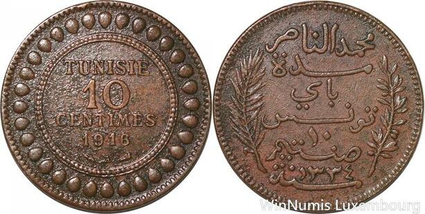 R8617 Tunisia 10 Centimes Muhammad al-Nasir Bey AH 1334 1916 A Paris -> M offer