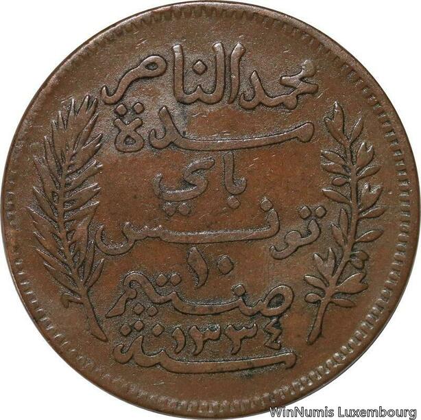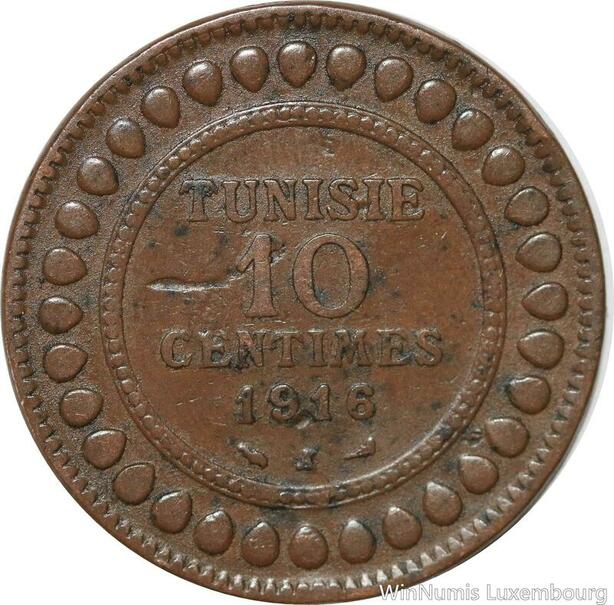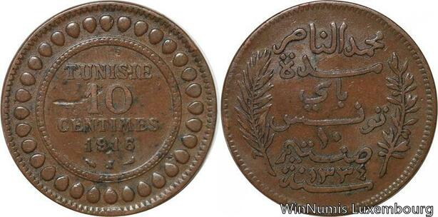 R8619 Tunisia 10 Centimes Muhammad al-Nasir Bey AH 1334 1916 A Paris -> M offer