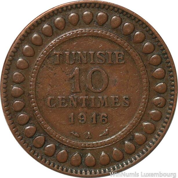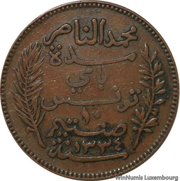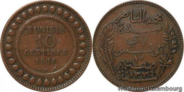 R8622 Tunisia 10 Centimes Muhammad al-Nasir Bey AH 1334 1916 A Paris -> M offer