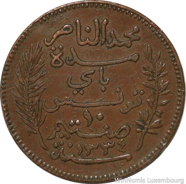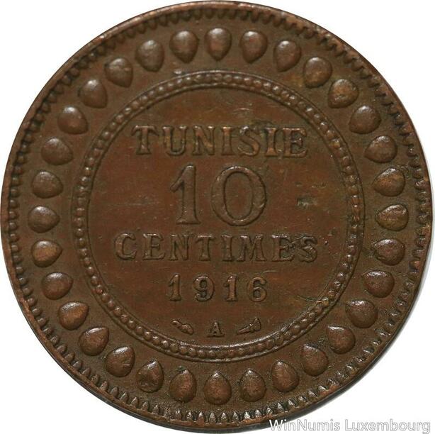 R8627 Tunisia 10 Centimes Muhammad al-Nasir Bey AH 1334 1916 A Paris -> M offer