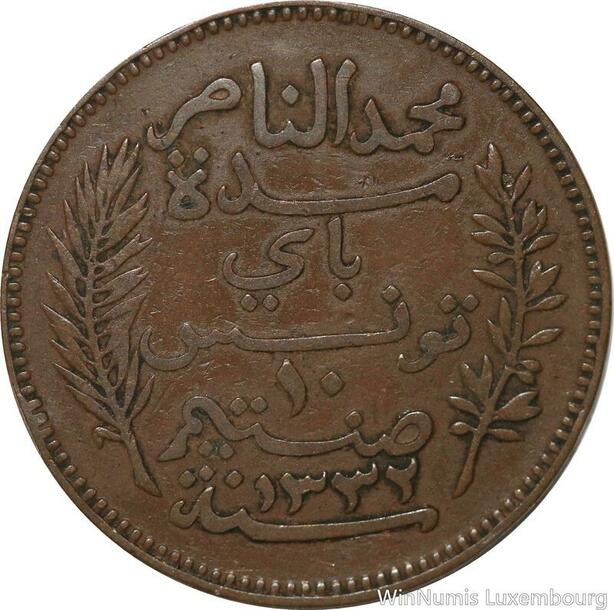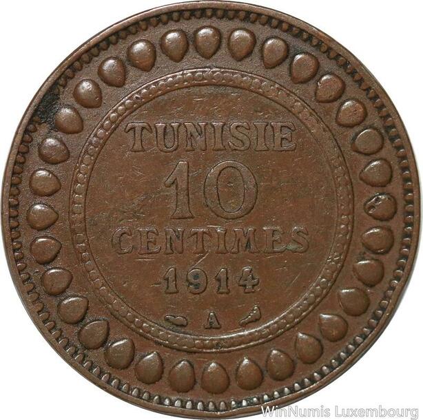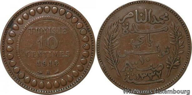 R8629 Tunisia 10 Centimes Muhammad al-Nasir Bey AH 1332 1914 A Paris -> M offer