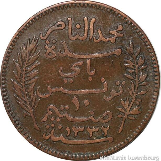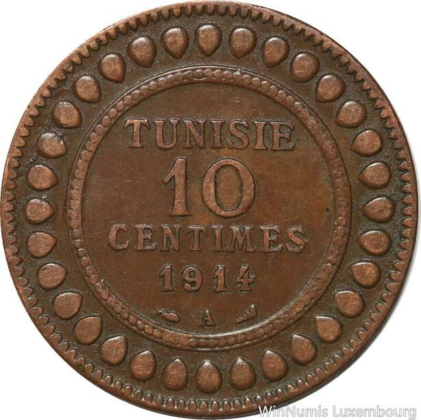 R8631 Tunisia 10 Centimes Muhammad al-Nasir Bey AH 1332 1914 A Paris -> M offer